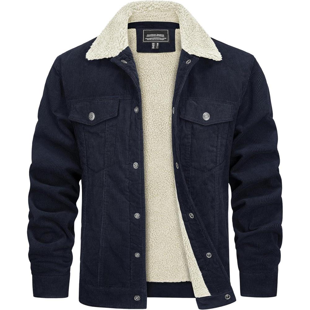 TACVASEN Men’s Corduroy Jacket Fleece Sherpa Lined Winter Coats Warm Cotton Casual Trucker Cargo Jacket with Multi Pockets(Navy)