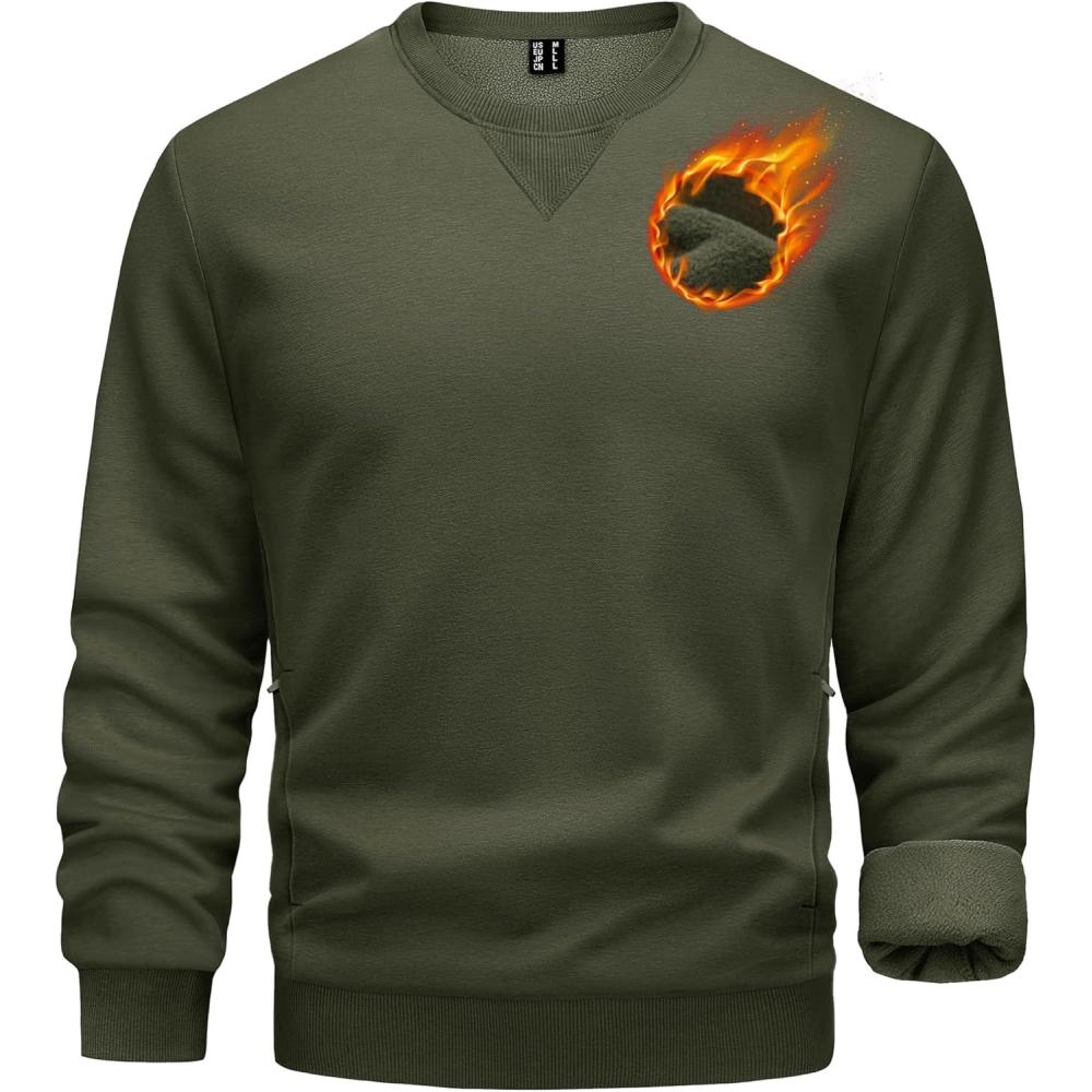 TACVASEN Men’s Crewneck Sweatshirt Fleece Lined with Pocket Winter Warm Midweight Casual Long Sleeve Pullover Sweatshirt(Army Green)