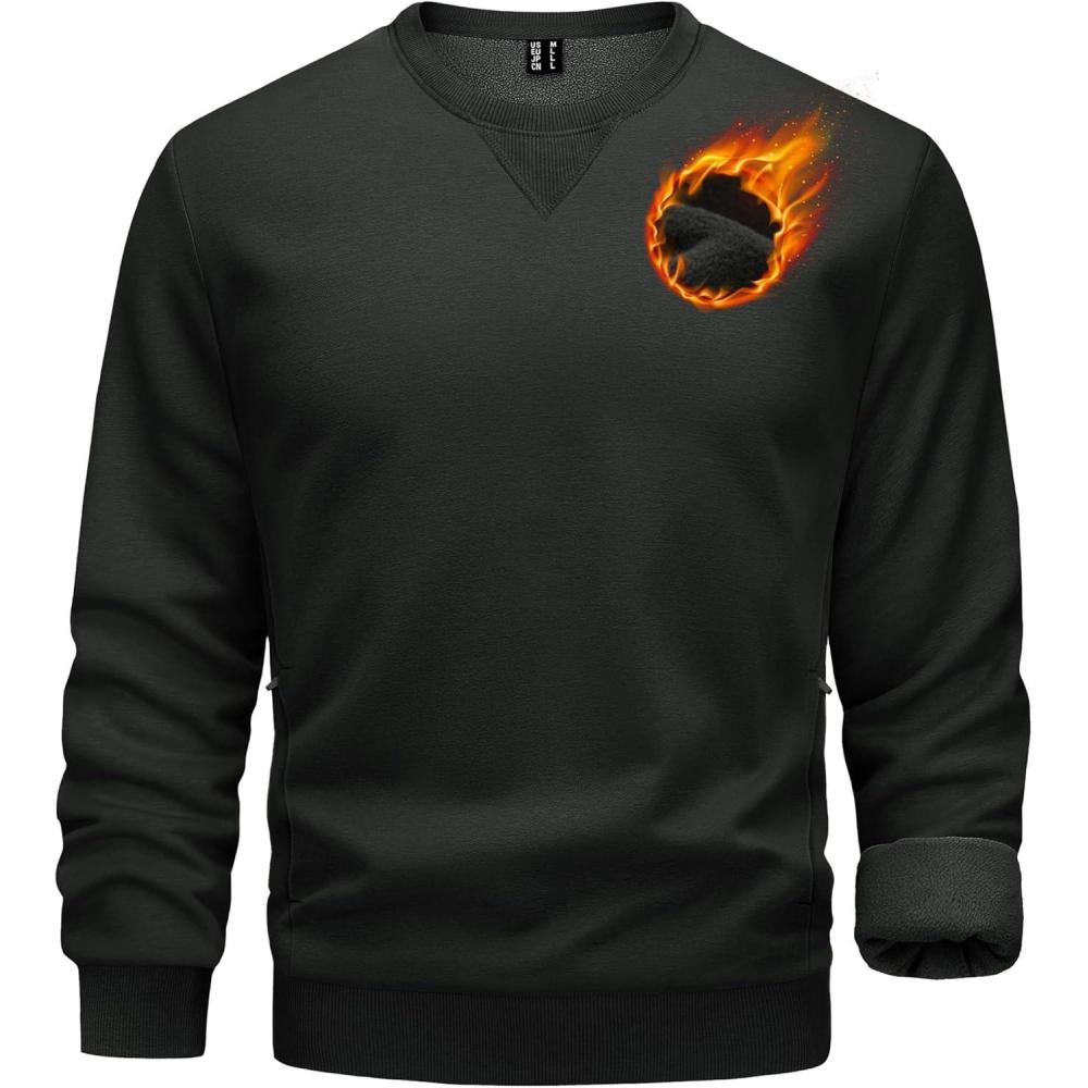 TACVASEN Men’s Crewneck Sweatshirt Fleece Lined with Pocket Winter Warm Midweight Casual Long Sleeve Pullover Sweatshirt(Black)