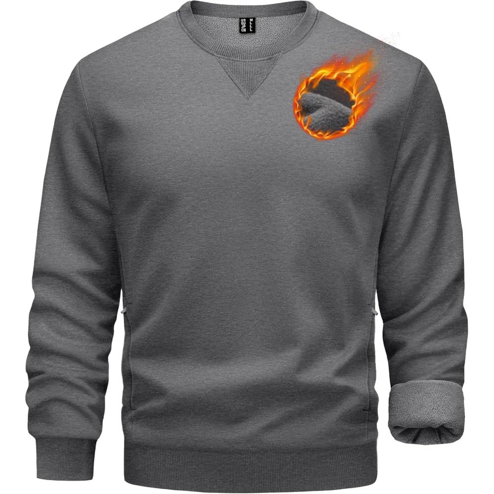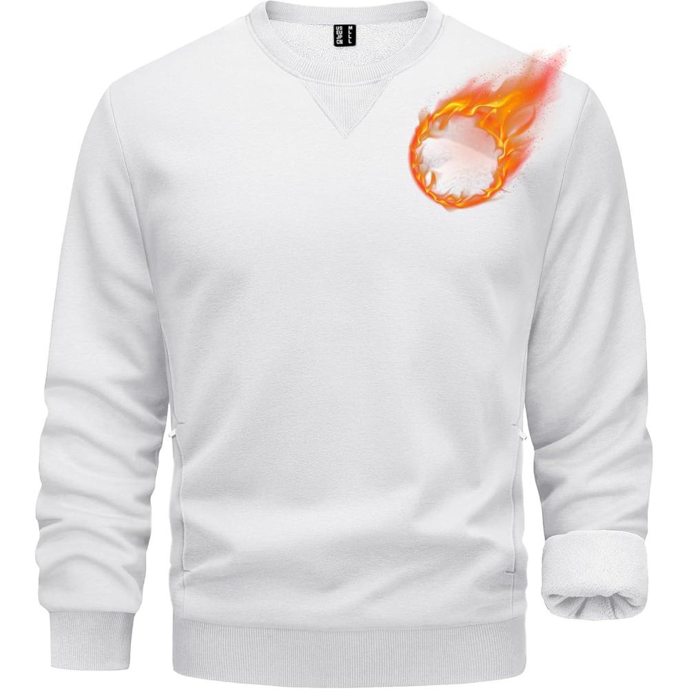 TACVASEN Men’s Crewneck Sweatshirt Fleece Lined with Pocket Winter Warm Midweight Casual Long Sleeve Pullover Sweatshirt(White)