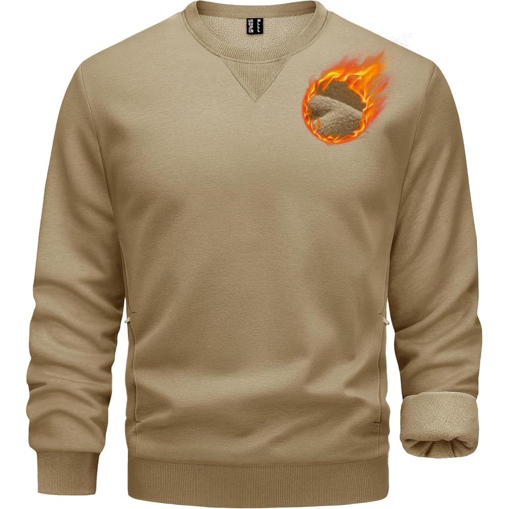 TACVASEN Men’s Crewneck Sweatshirt Fleece Lined with Pocket Winter Warm Midweight Casual Long Sleeve Pullover Sweatshirt(Khaki)