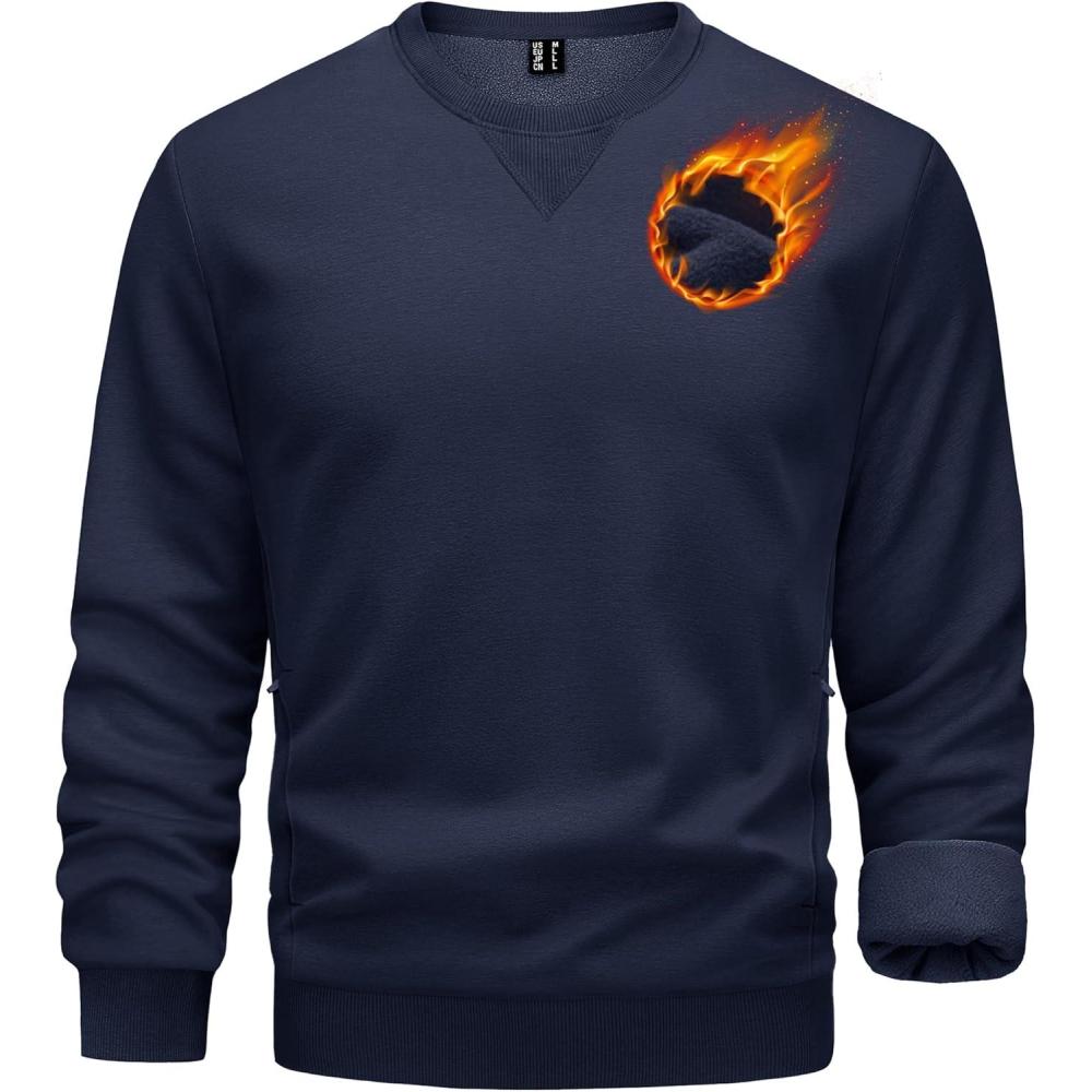 TACVASEN Men’s Crewneck Sweatshirt Fleece Lined with Pocket Winter Warm Midweight Casual Long Sleeve Pullover Sweatshirt(Navy)