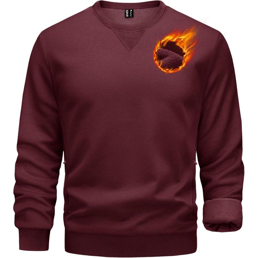 TACVASEN Men’s Crewneck Sweatshirt Fleece Lined with Pocket Winter Warm Midweight Casual Long Sleeve Pullover Sweatshirt(Wine Red)