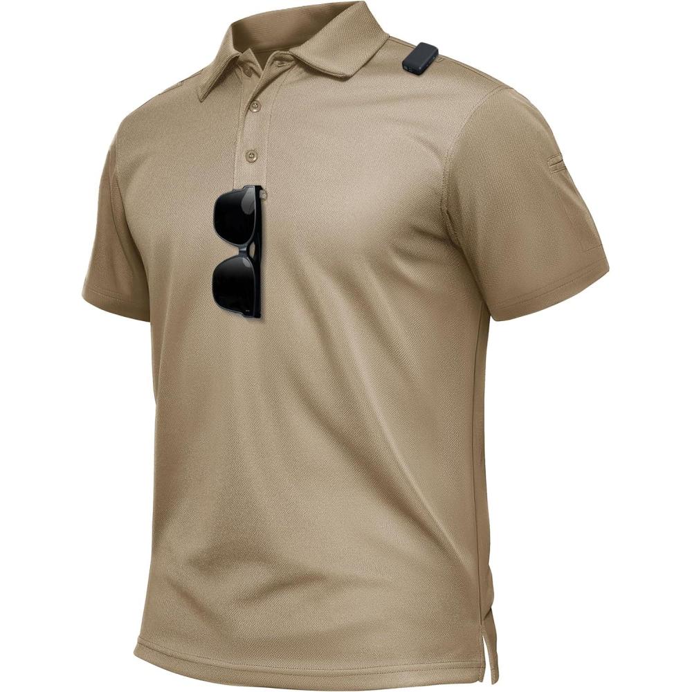 TACVASEN Men’s Polo Shirts Dry Fit Tactical Golf Polos Short Sleeve Shirt UPF 50 Performance Collared Work Athletic(Khaki)