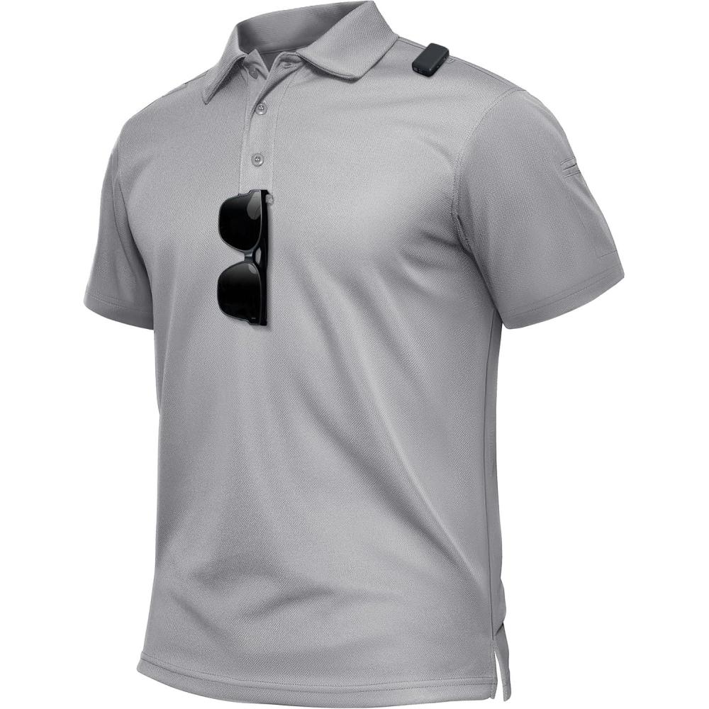 TACVASEN Men’s Polo Shirts Dry Fit Tactical Golf Polos Short Sleeve Shirt UPF 50 Performance Collared Work Athletic(Lightgray)