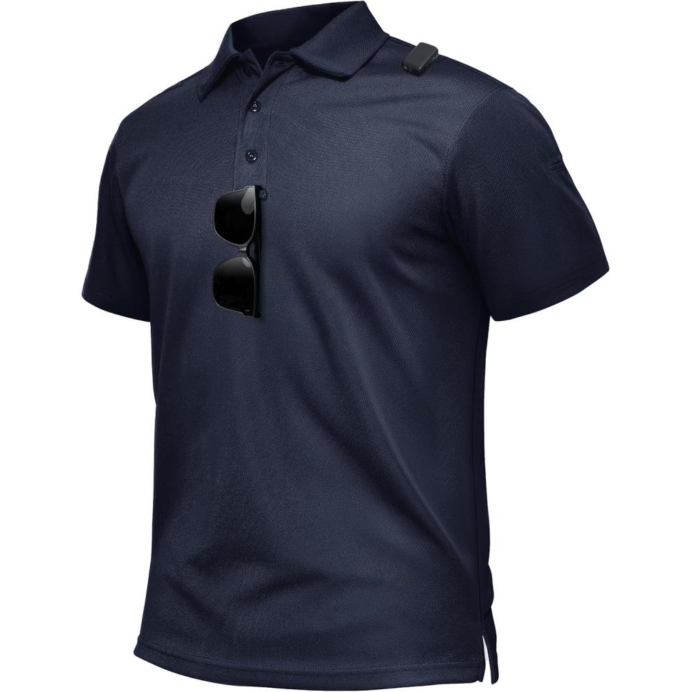 TACVASEN Men’s Polo Shirts Dry Fit Tactical Golf Polos Short Sleeve Shirt UPF 50 Performance Collared Work Athletic(Navy)