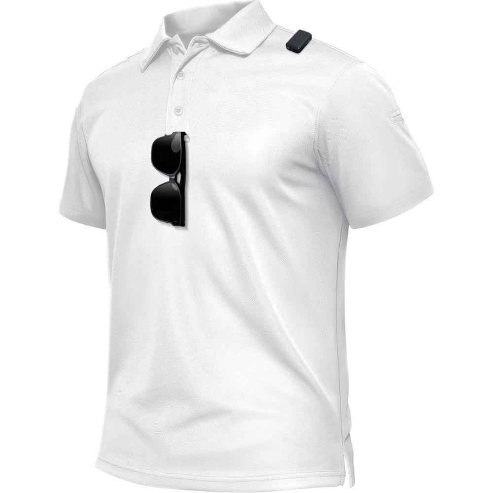 TACVASEN Men’s Polo Shirts Dry Fit Tactical Golf Polos Short Sleeve Shirt UPF 50 Performance Collared Work Athletic(White)