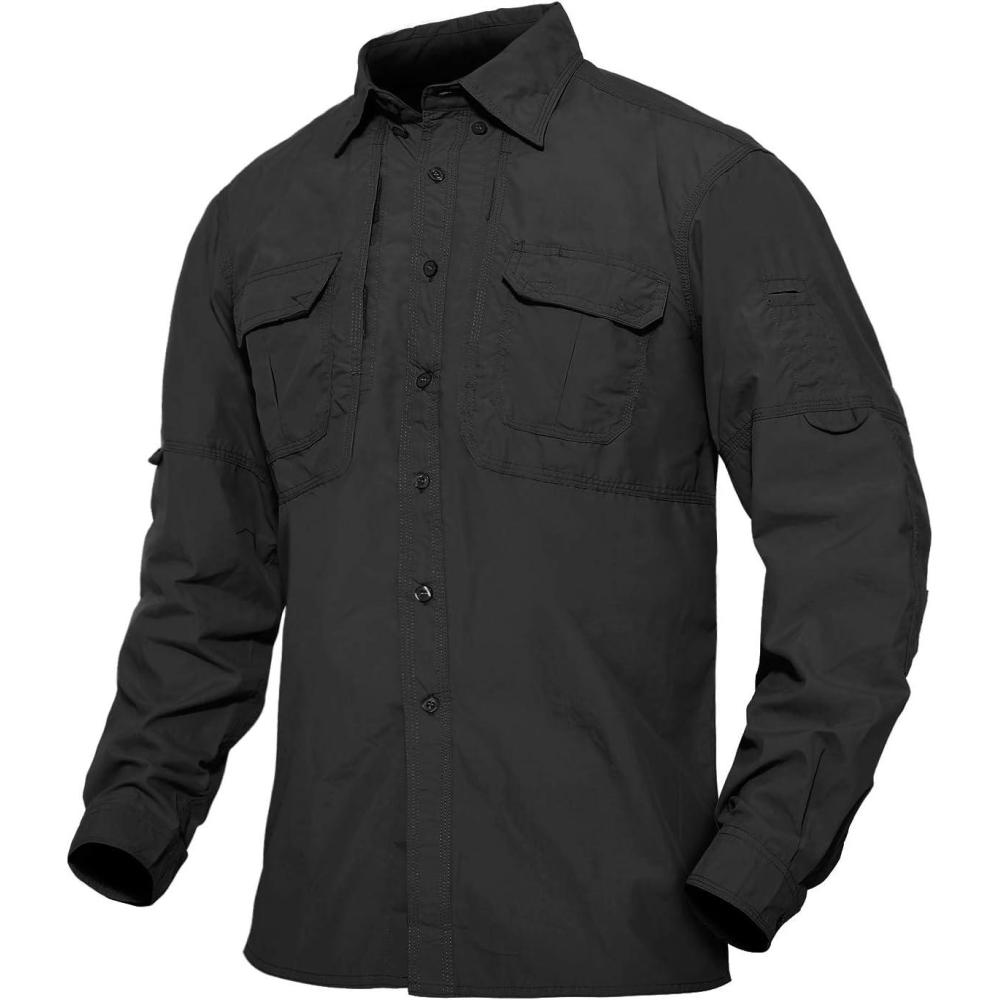 TACVASEN Men’s Tactical Shirts Long Sleeve Quick Dry Breathable Button Down Fishing Work Safari Hiking Camping Hunting(Black)