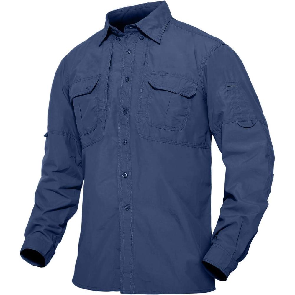 TACVASEN Men’s Tactical Shirts Long Sleeve Quick Dry Breathable Button Down Fishing Work Safari Hiking Camping Hunting(Navy)