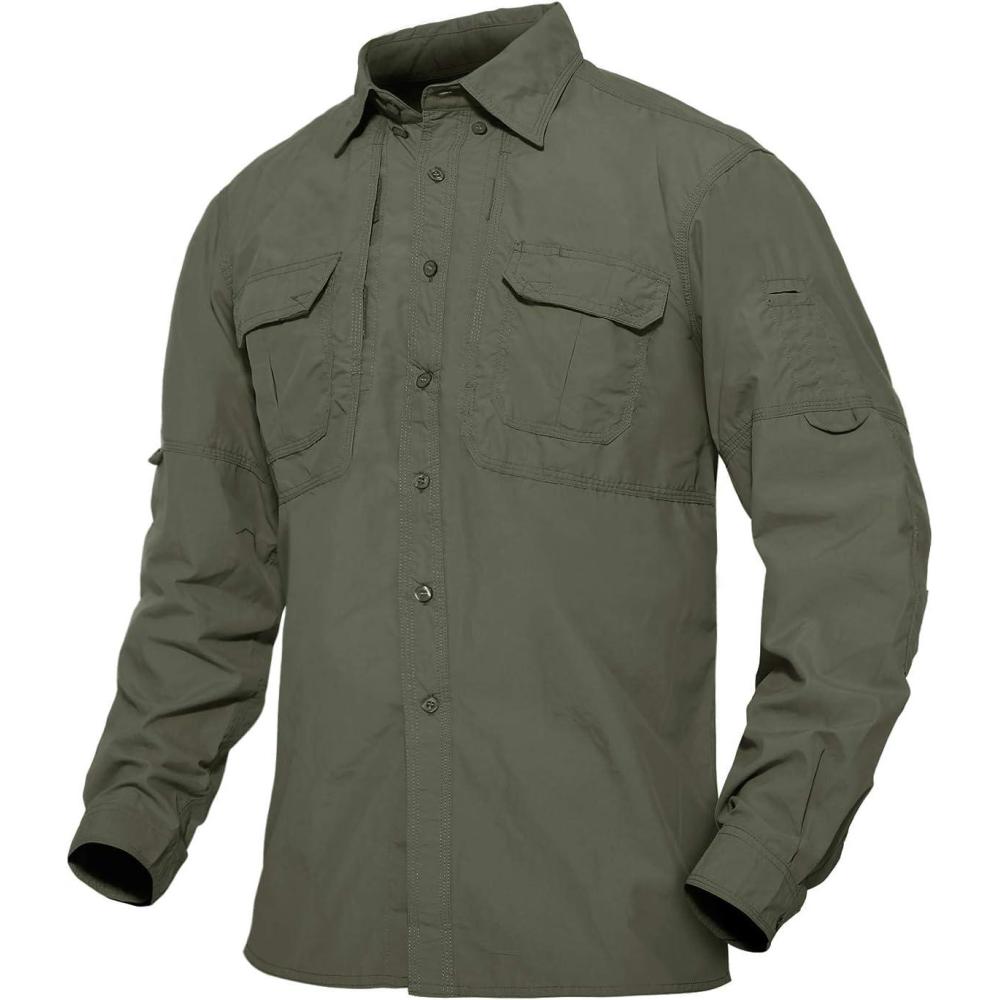 TACVASEN Men’s Tactical Shirts Long Sleeve Quick Dry Breathable Button Down Fishing Work Safari Hiking Camping Hunting(Green)