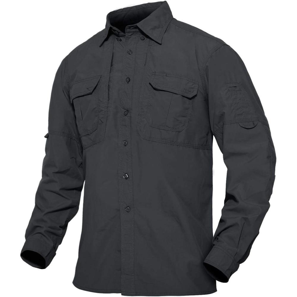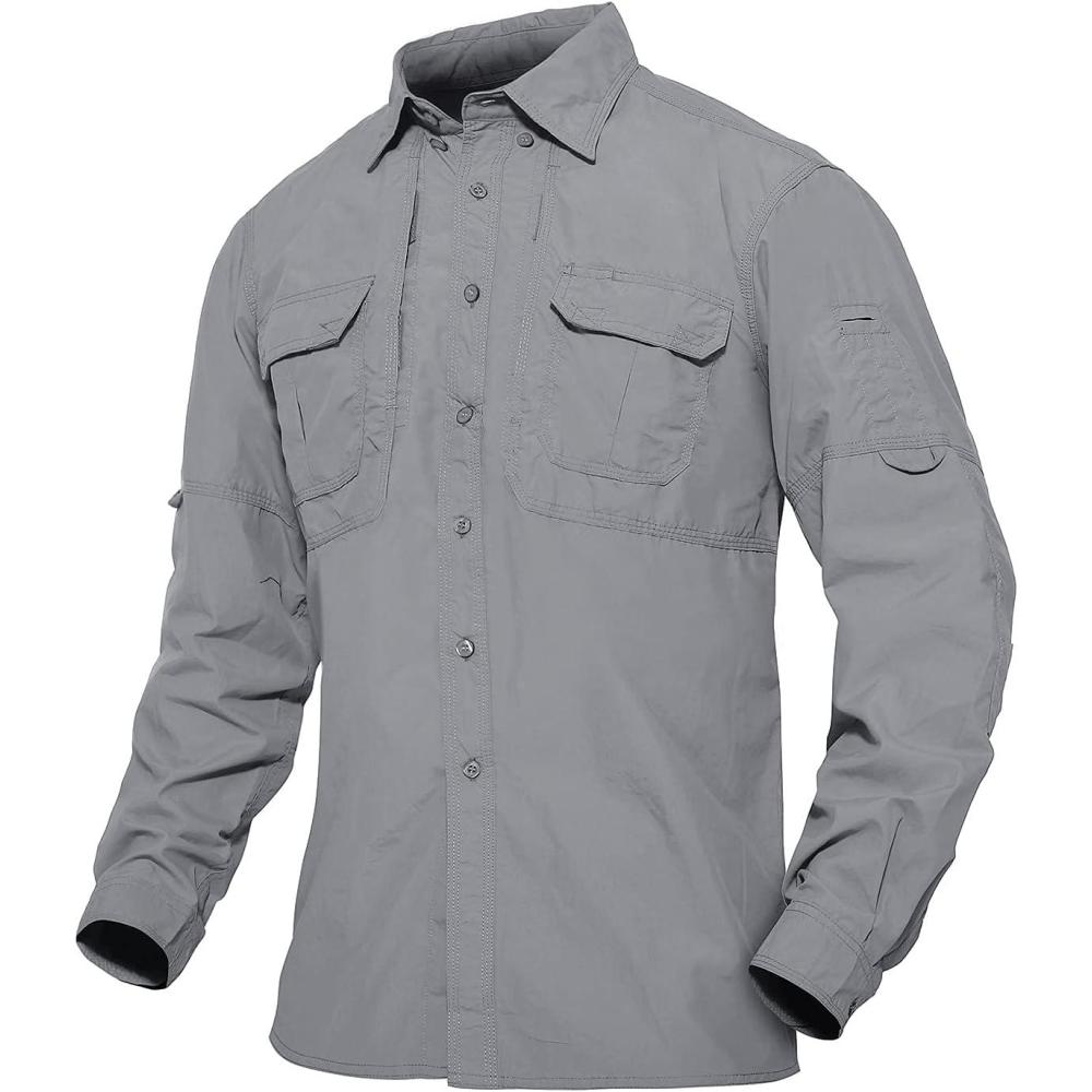 TACVASEN Men’s Tactical Shirts Long Sleeve Quick Dry Breathable Button Down Fishing Work Safari Hiking Camping Hunting(Grey)