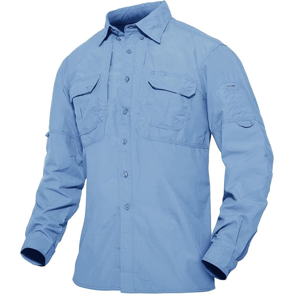 TACVASEN Men’s Tactical Shirts Long Sleeve Quick Dry Breathable Button Down Fishing Work Safari Hiking Camping Hunting(Sky Blue)