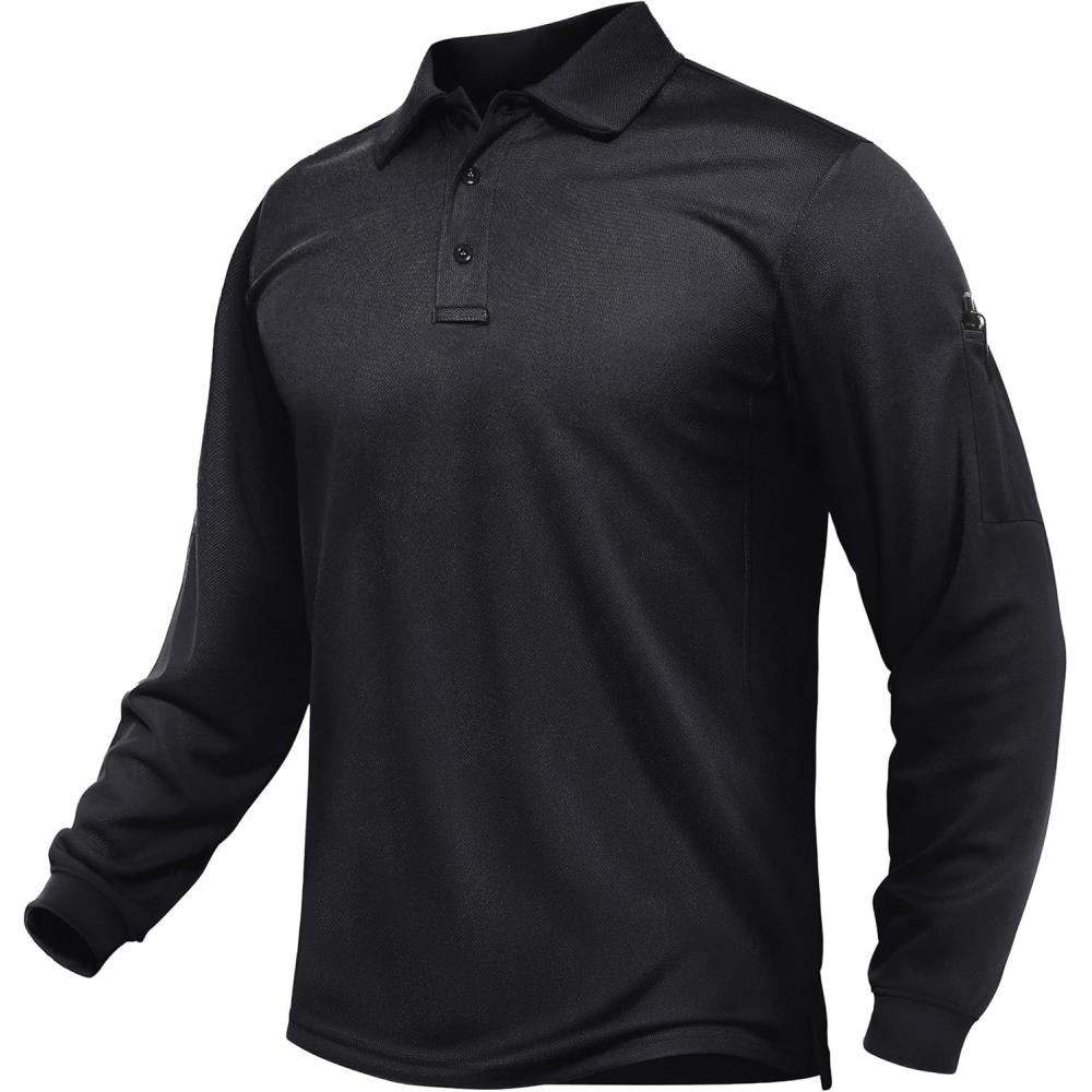 TACVASEN Men’s Long Sleeve Polo Shirts Quick Dry Tactical Golf Collared Lightweight Work Breathable Moisture Wicking Outdoor(#01-black)