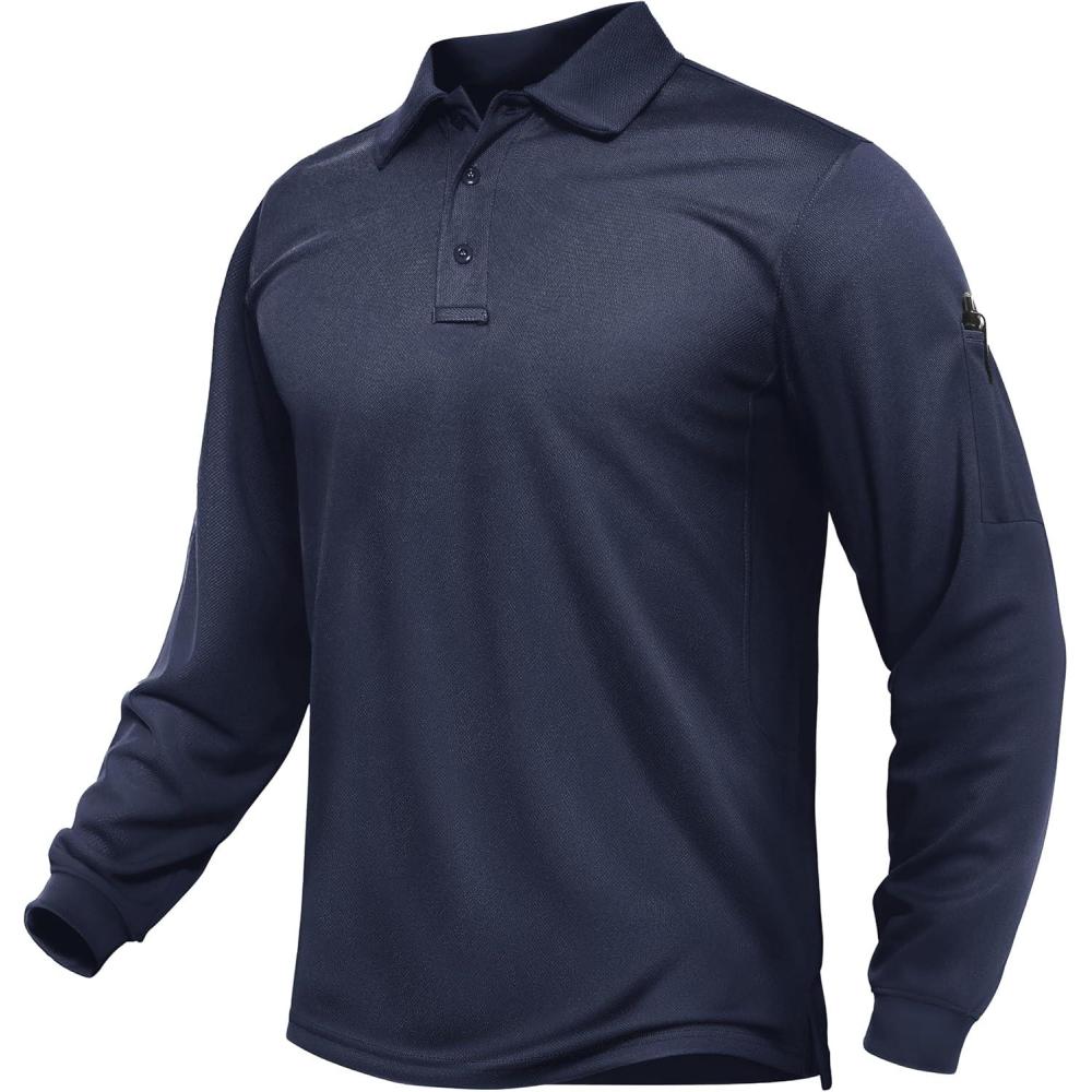 TACVASEN Men’s Long Sleeve Polo Shirts Quick Dry Tactical Golf Collared Lightweight Work Breathable Moisture Wicking Outdoor(#02-navy)