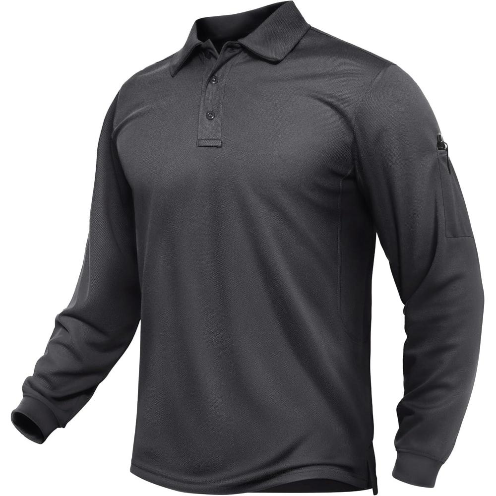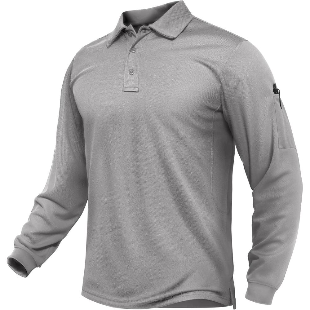 TACVASEN Men’s Long Sleeve Polo Shirts Quick Dry Tactical Golf Collared Lightweight Work Breathable Moisture Wicking Outdoor(#03-gray)