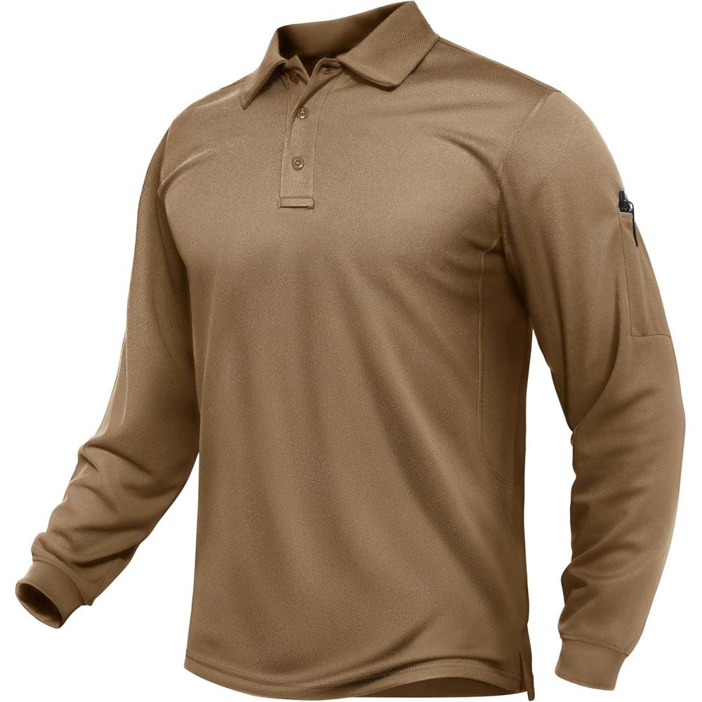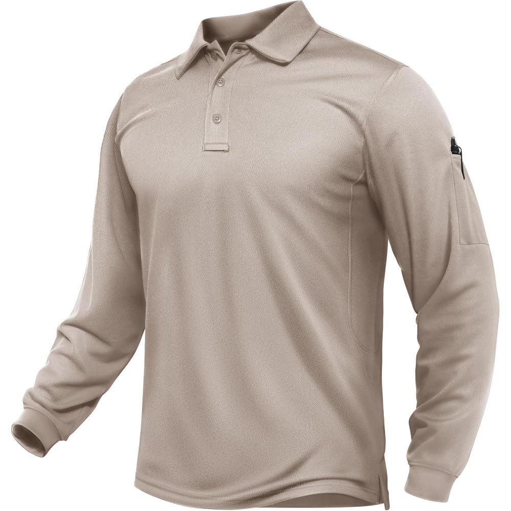TACVASEN Men’s Long Sleeve Polo Shirts Quick Dry Tactical Golf Collared Lightweight Work Breathable Moisture Wicking Outdoor(#05-khaki)