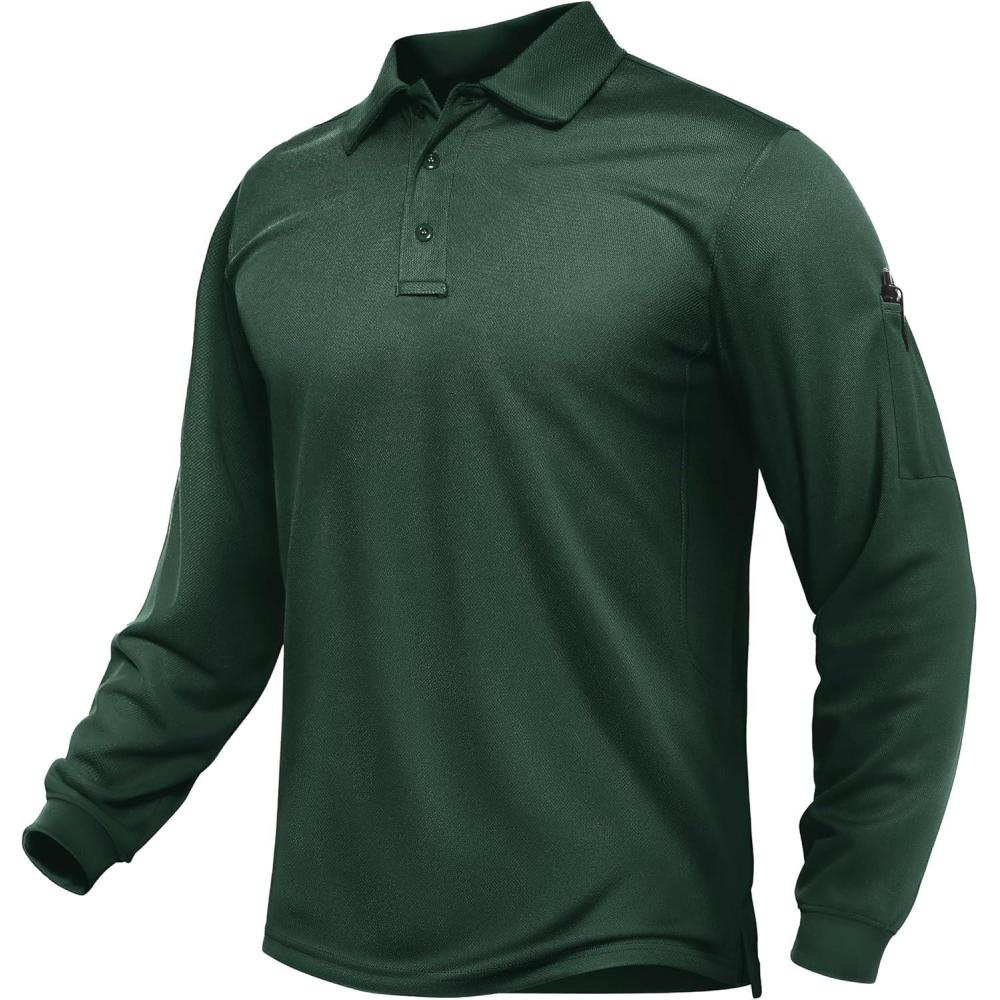 TACVASEN Men’s Long Sleeve Polo Shirts Quick Dry Tactical Golf Collared Lightweight Work Breathable Moisture Wicking Outdoor(#07-dark Green)