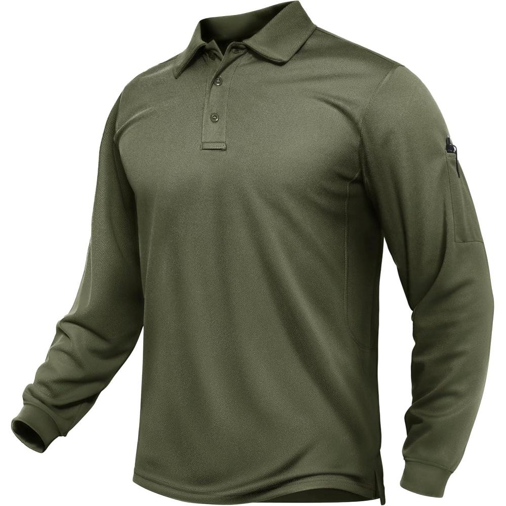 TACVASEN Men’s Long Sleeve Polo Shirts Quick Dry Tactical Golf Collared Lightweight Work Breathable Moisture Wicking Outdoor(#08-army Green)