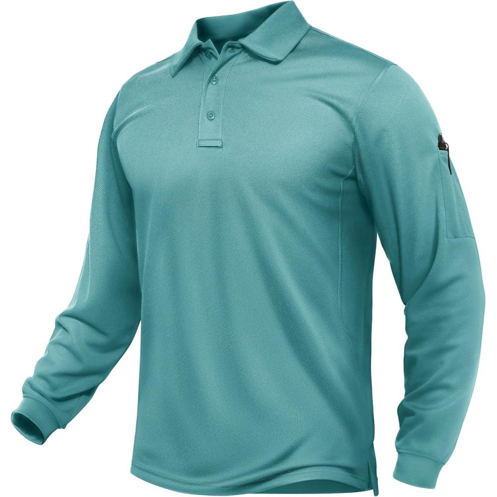 TACVASEN Men’s Long Sleeve Polo Shirts Quick Dry Tactical Golf Collared Lightweight Work Breathable Moisture Wicking Outdoor(#11-mint Green)
