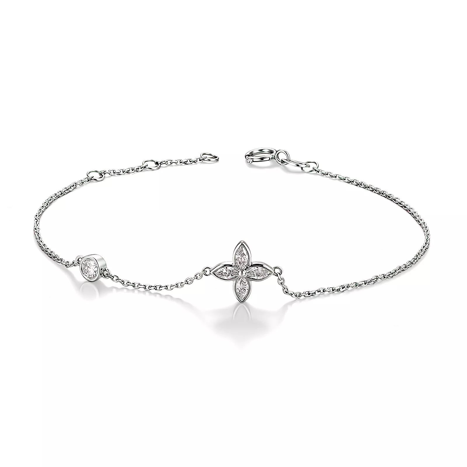 18k White Gold Marquise Diamond Clover Station Bracelet