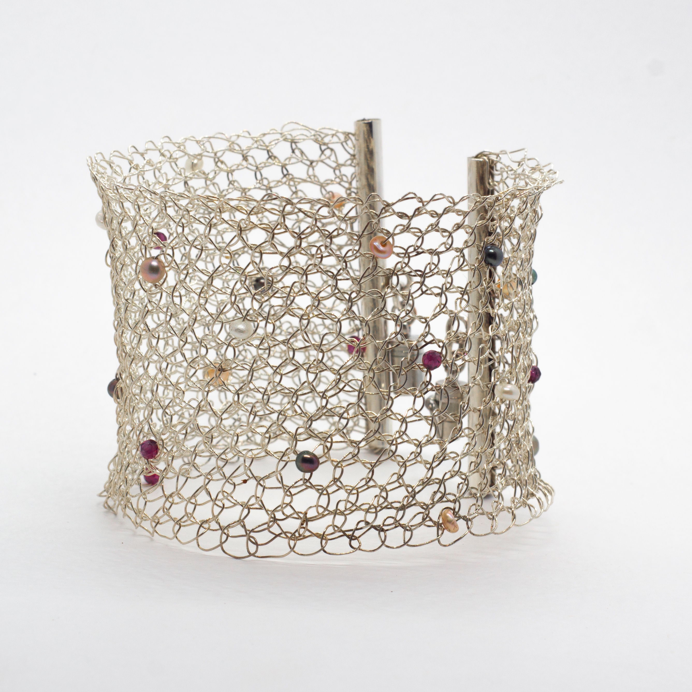 Crochet Bracelet, Garnets & Pearls