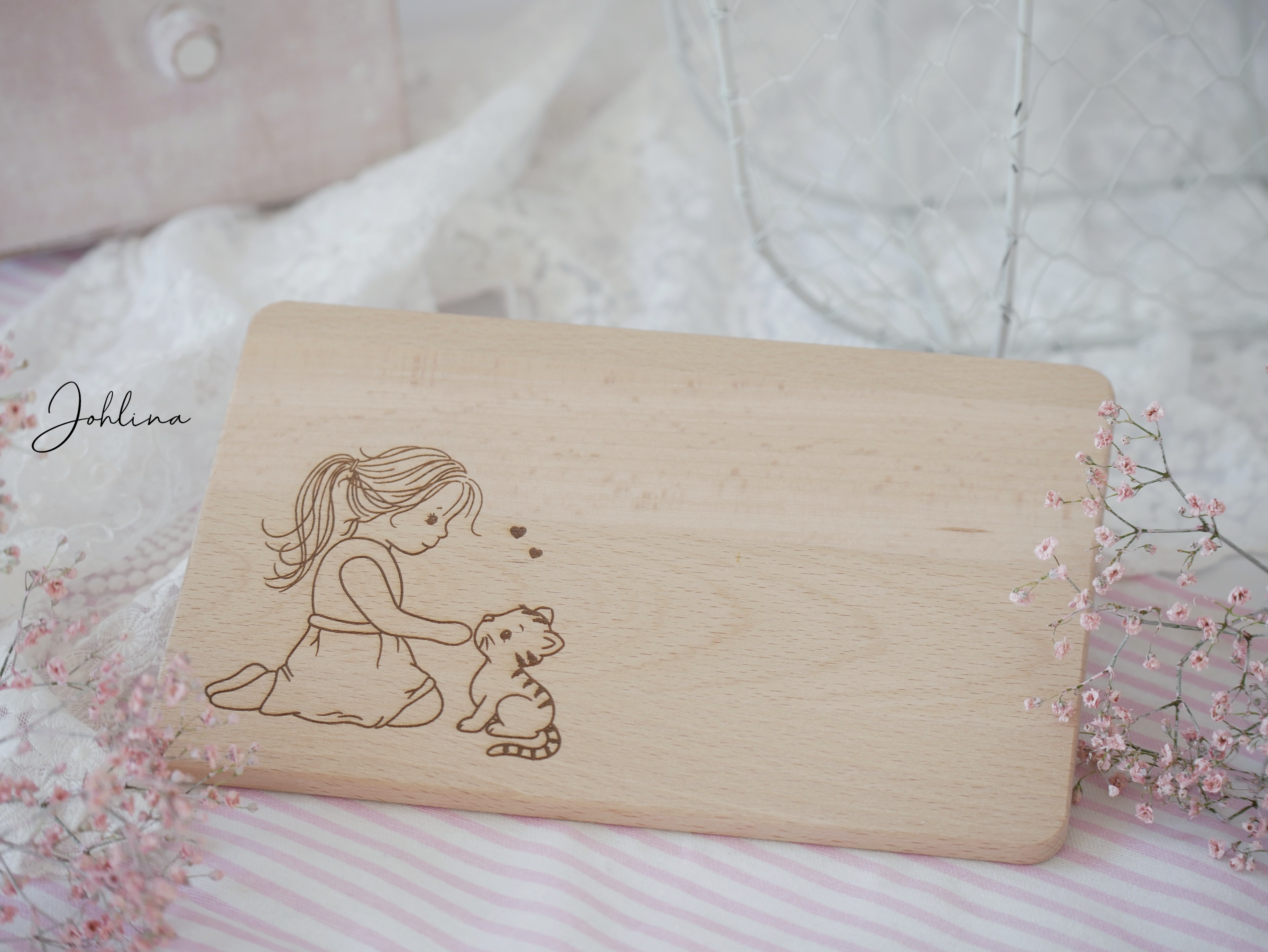Frühstücksbrettchen Mädchen mit Katze