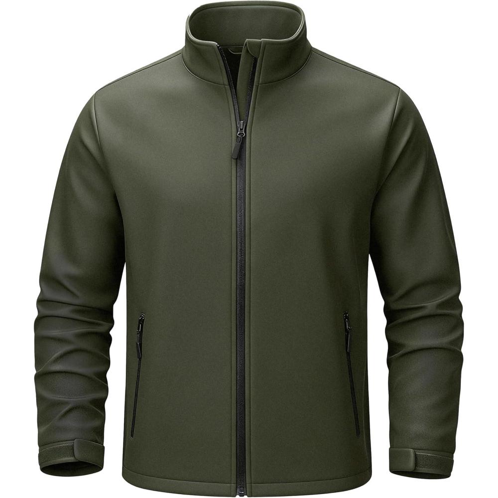 TACVASEN Men’s Lightweight Softshell Jacket Waterproof Lightweight Fleece Lined Winter Coat with 4 Pockets Windbreaker(Armygreen)
