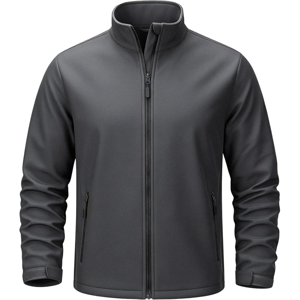 TACVASEN Men’s Lightweight Softshell Jacket Waterproof Lightweight Fleece Lined Winter Coat with 4 Pockets Windbreaker(Darkgrey)