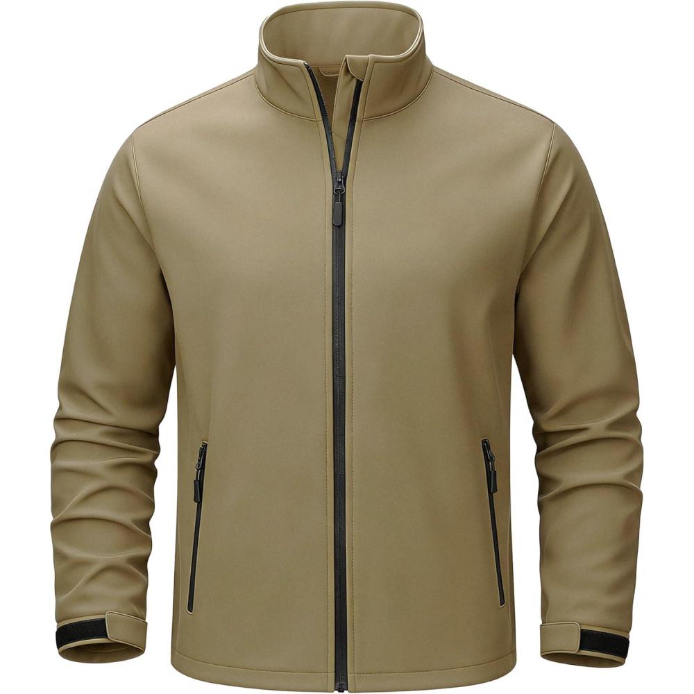 TACVASEN Men’s Lightweight Softshell Jacket Waterproof Lightweight Fleece Lined Winter Coat with 4 Pockets Windbreaker(Khaki)