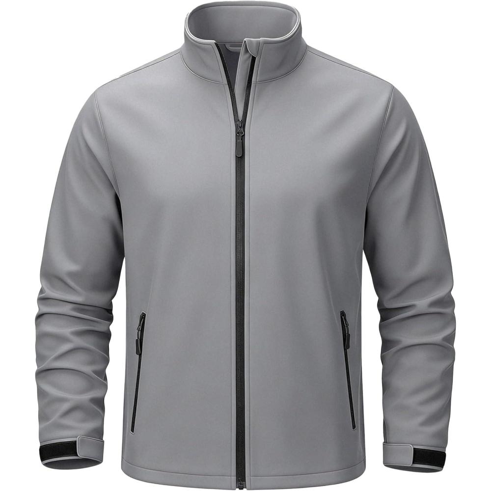 TACVASEN Men’s Lightweight Softshell Jacket Waterproof Lightweight Fleece Lined Winter Coat with 4 Pockets Windbreaker(Lightgrey)