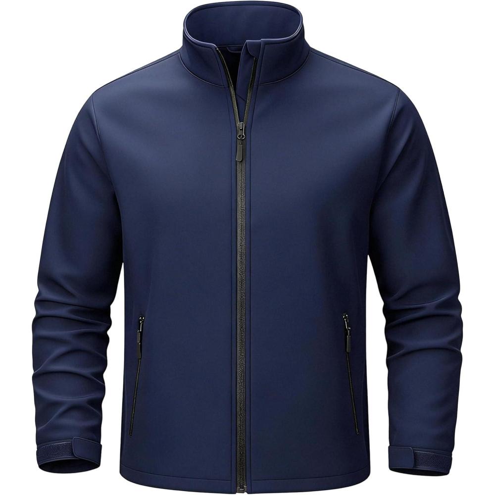 TACVASEN Men’s Lightweight Softshell Jacket Waterproof Lightweight Fleece Lined Winter Coat with 4 Pockets Windbreaker(Navy)