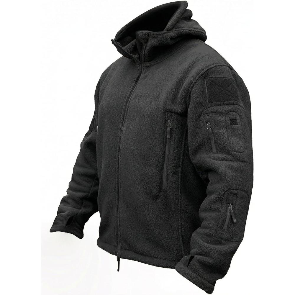 TACVASEN Tactical Jacket for Men Fleece Jackets Full Zip Military Hoodies Windproof Warm Winter Coat Outdoor Hunting(#01-black)