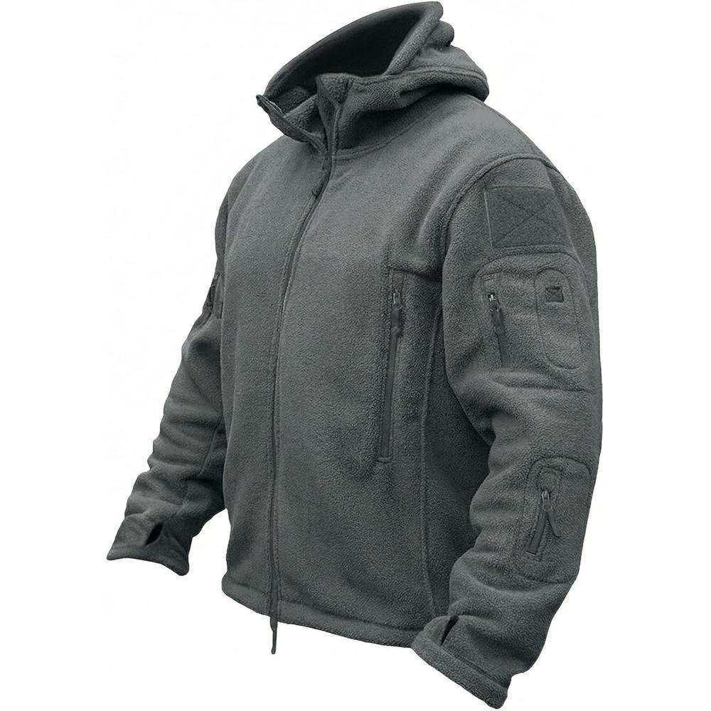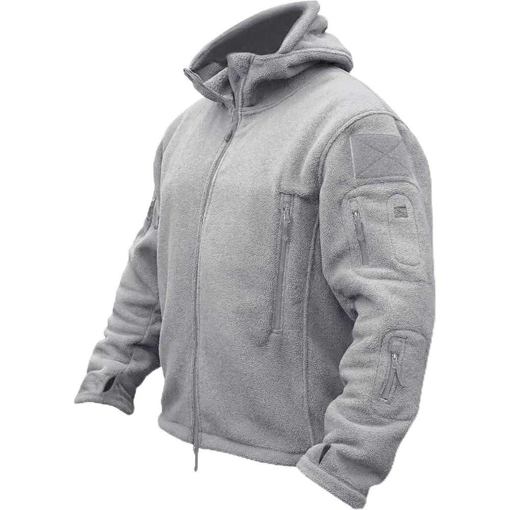 TACVASEN Tactical Jacket for Men Fleece Jackets Full Zip Military Hoodies Windproof Warm Winter Coat Outdoor Hunting(#02-gray)