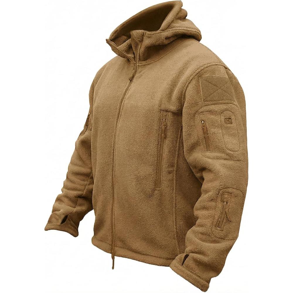 TACVASEN Tactical Jacket for Men Fleece Jackets Full Zip Military Hoodies Windproof Warm Winter Coat Outdoor Hunting(#05-sand)
