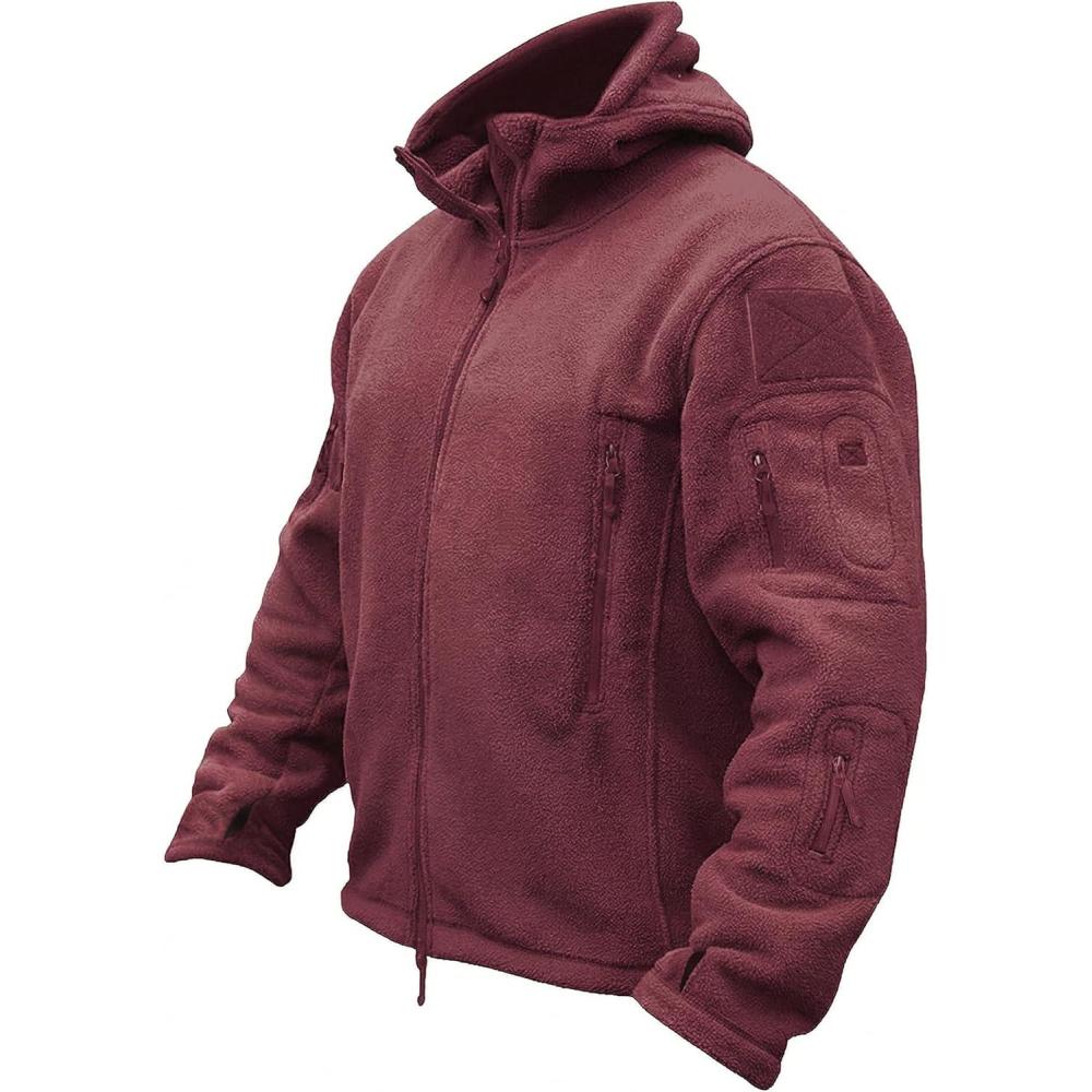 TACVASEN Tactical Jacket for Men Fleece Jackets Full Zip Military Hoodies Windproof Warm Winter Coat Outdoor Hunting(#09-wine Red)