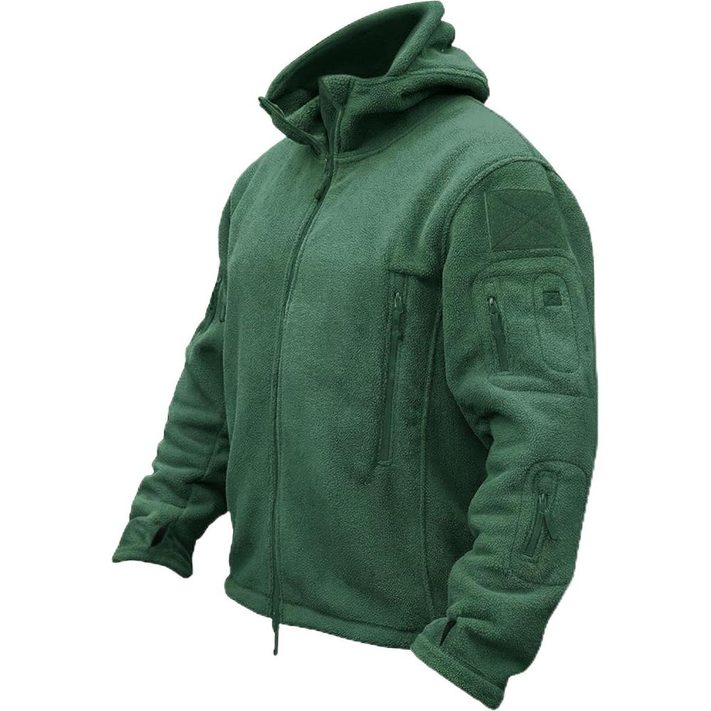 TACVASEN Tactical Jacket for Men Fleece Jackets Full Zip Military Hoodies Windproof Warm Winter Coat Outdoor Hunting(#10-dark Green)