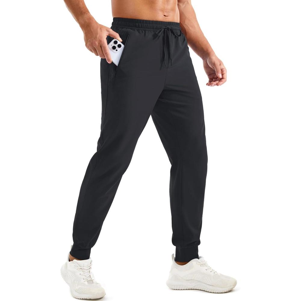 TACVASEN Men’s Lightweight Athletic Joggers with Zipper Pockets Quick Dry Track Pants for Men Gym Sweatpants Workout Golf(Black)
