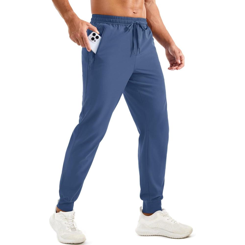 TACVASEN Men’s Lightweight Athletic Joggers with Zipper Pockets Quick Dry Track Pants for Men Gym Sweatpants Workout Golf(Blue Grey)