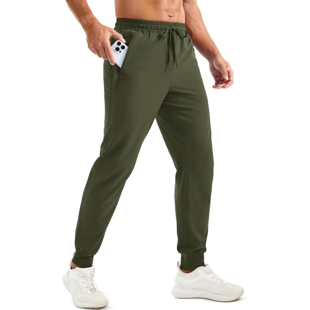 TACVASEN Men’s Lightweight Athletic Joggers with Zipper Pockets Quick Dry Track Pants for Men Gym Sweatpants Workout Golf(Green)