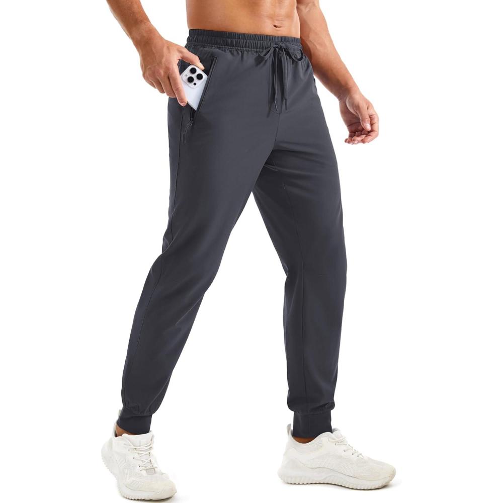 TACVASEN Men’s Lightweight Athletic Joggers with Zipper Pockets Quick Dry Track Pants for Men Gym Sweatpants Workout Golf(Grey)