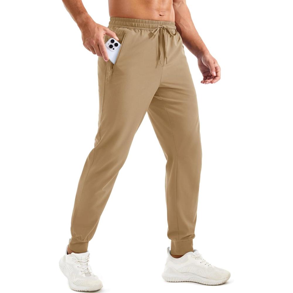 TACVASEN Men’s Lightweight Athletic Joggers with Zipper Pockets Quick Dry Track Pants for Men Gym Sweatpants Workout Golf(Khaki)