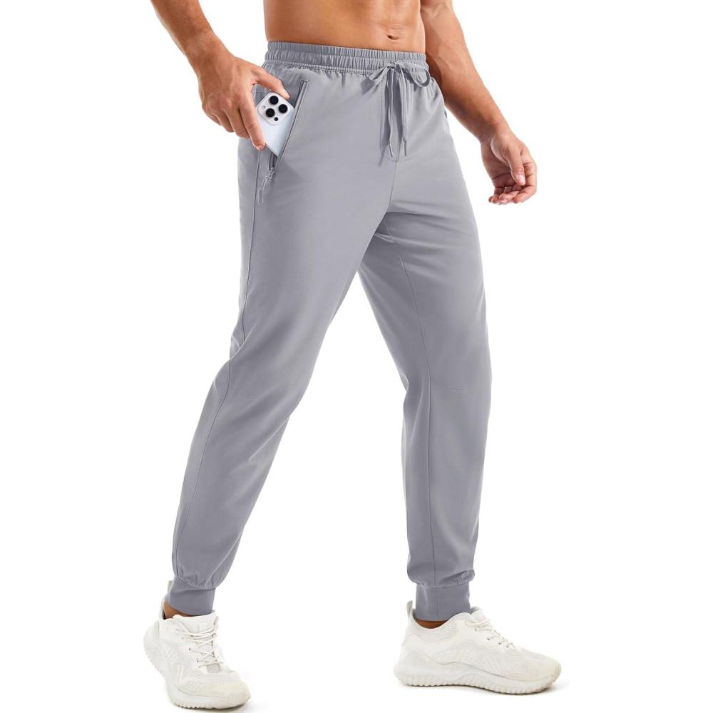 TACVASEN Men’s Lightweight Athletic Joggers with Zipper Pockets Quick Dry Track Pants for Men Gym Sweatpants Workout Golf(Light Grey)