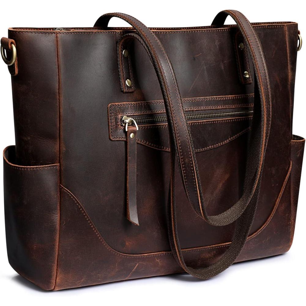 S-ZONE Genuine Leather Tote Bag for Women Large Shoulder Purses Work Handbags with Crossbody Strap Vintage(Dark Brown)